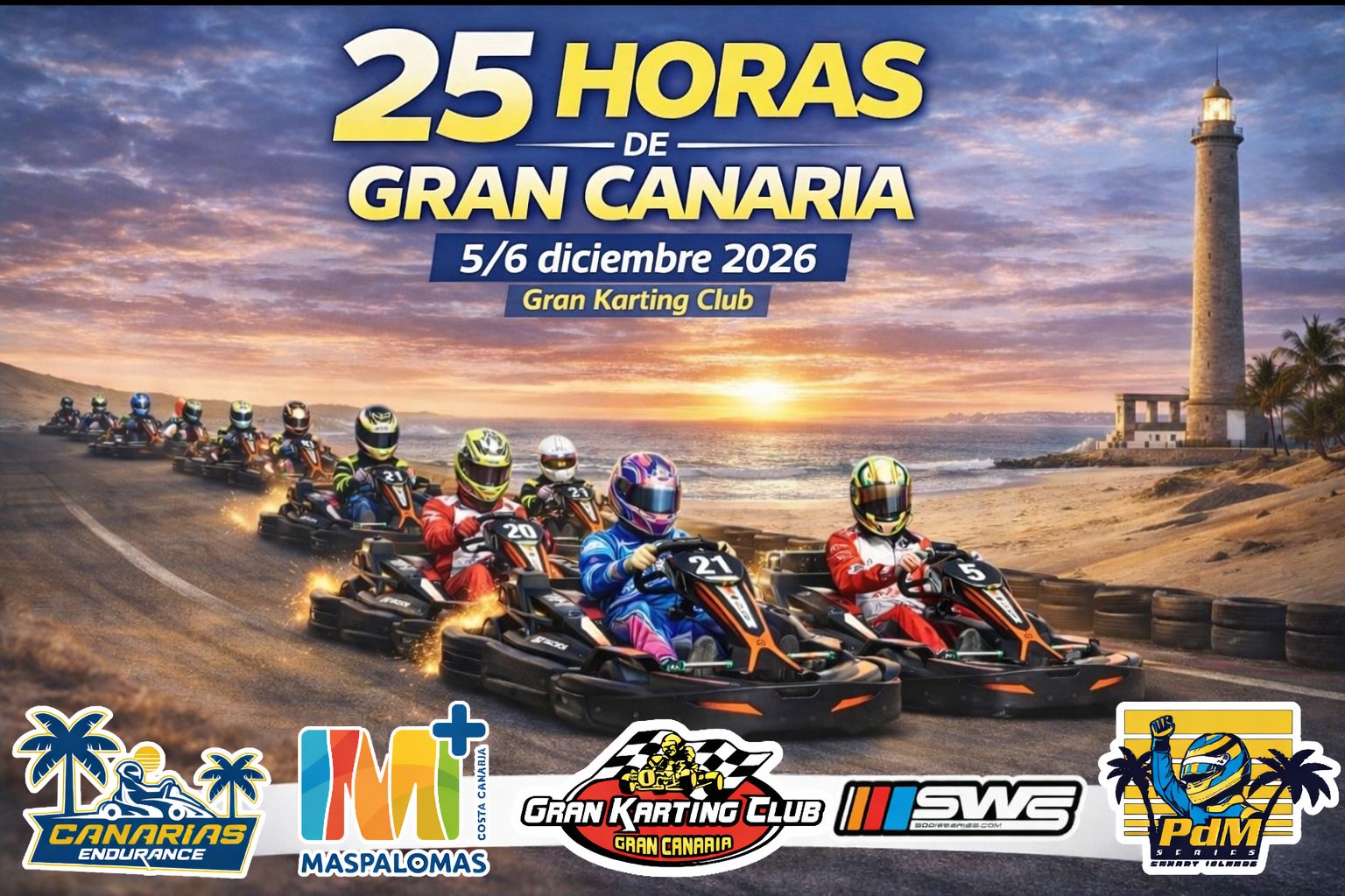 Tras algunos años de ausencia, el año pasado volvió al calendario de Canarias Karting Series las famosas 24 horas de Gran Canaria, siendo la primera edición como evento SWS. Trás el éxito cosechado con la participación de los mejores equipos del mundo en categoría endurance, este año repetimos y aumentando el reto: 25 horas de resistencia pura. Esta carrera se realiza en el trazado especial de 1603 metros GKC para darle a los participantes la mejor experiencia en karting 4T.